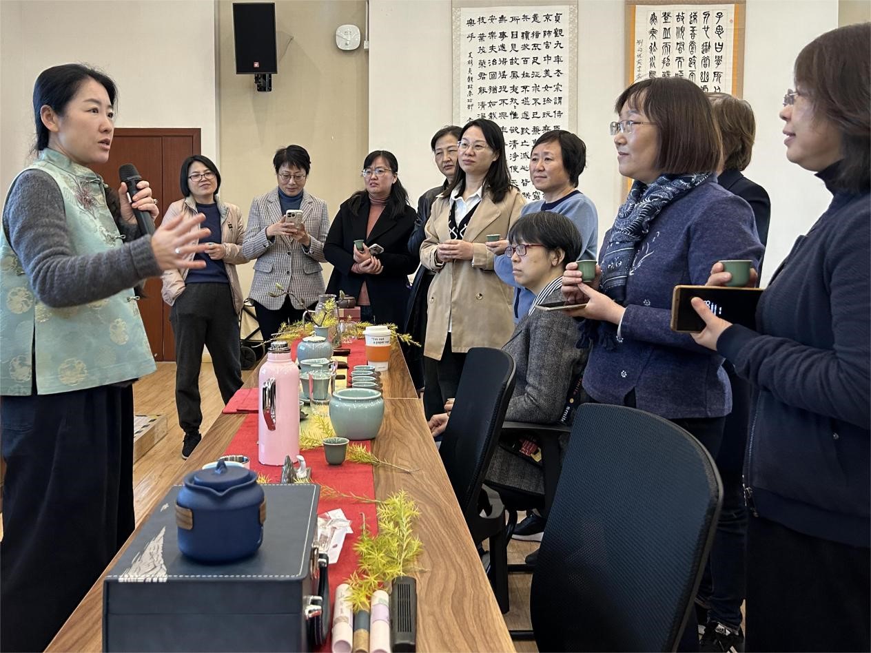 讲座环节结束后,魏老师为大家泡茶,展示了茶文化中的泡茶方法,之后与教工们一同品茶,介绍不同茶的气味以及口味特点,带领大家进入茶的世界,空气中弥漫这茶的清香,大家都逐渐沉醉其中。