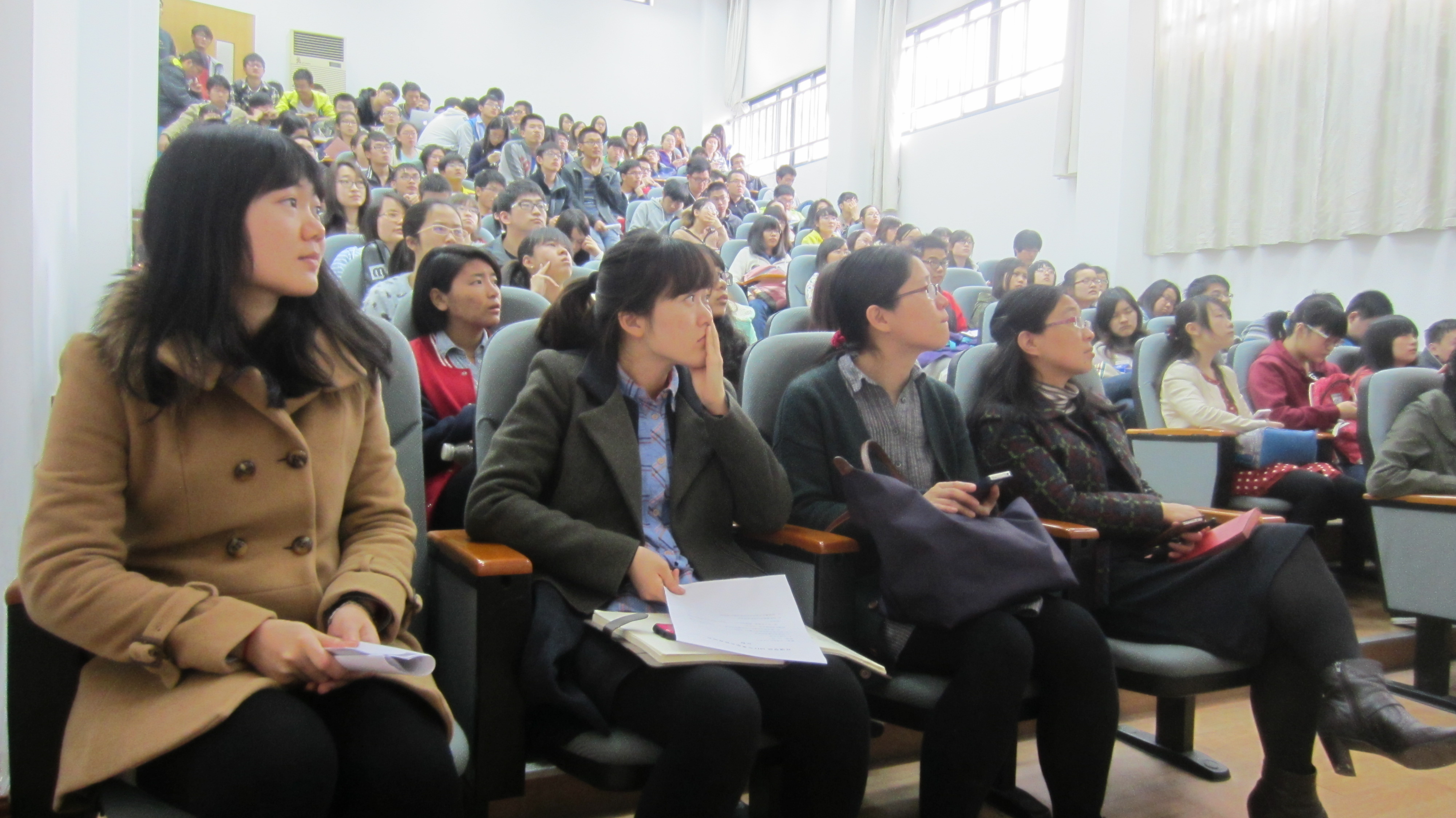 2014年 4月1日中午,我院12级学生齐聚明净楼114报告厅参加2014年暑期社会实践宣讲会,同学们的热情非常高涨,报告厅座无虚席。