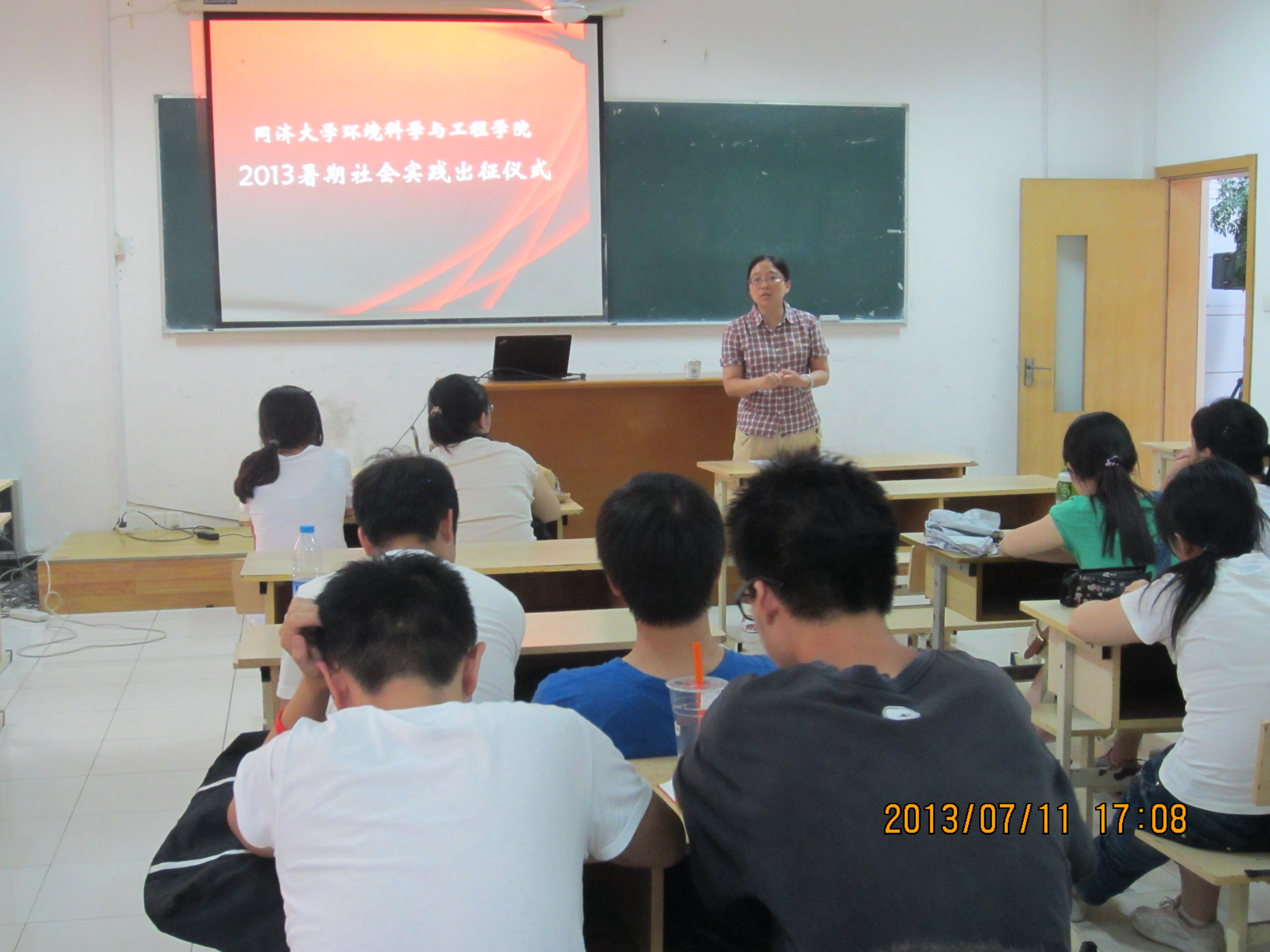 2013年7月11日下午4:30,环境学院2013年本科生暑期社会实践出征仪式在环境学院109召开。出席本次出征仪式的有院党委书记黄翔峰老师、党委副书记钱昕老师、团委副书记王宁老师,以及22支暑期社会实践团队的队长。