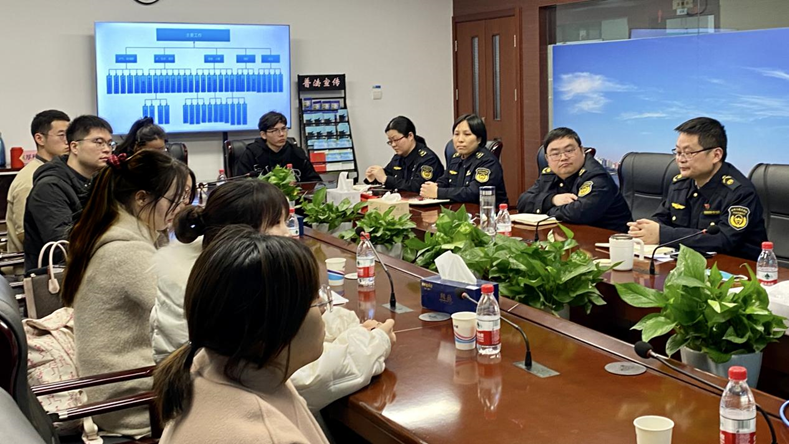 王锐副教授简要介绍了我院在长江流域水环境调研和健康风险污染物筛查方面的最新工作,以及长江水环境教育部重点实验室、长三角可持续发展研究院围绕长江大保护和新污染物治理开展的工作。本科生同学李东妮介绍了团队近期面向上海居民开展的关于长江大保护和新污染物治理的社会调研情况,从公众参与角度与几位执法总队主办交流了环保的公众宣传方式。本科生余贝澜、俞思琦、夏辉康、李博涵,研究生曹丰就上海市重点排污单位监测情况、污染集中整治案例、疫情期间医疗废物处理监管等进行了提问,现场交流气氛十分热烈。