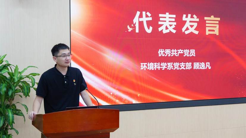 会议同时邀请环境工程系党支部书记尹海龙、环境科学系党支部顾逸凡、研究生第三党支部张普玲、办公室党支部傅阳分别作为先进基层党组织、优秀共产党员、优秀党务工作者代表作了交流发言。