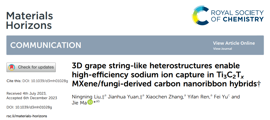 我院马杰教授团队在MXene基钠离子高效捕获电极构筑方面取得进...